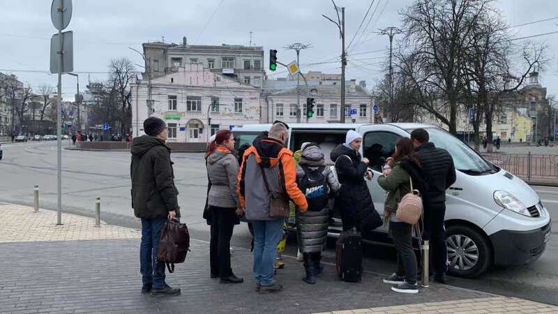 到了我们准备避难的阿森纳地铁站,我发现地铁站门口聚集了很多拿行李的人。原来,这里是离城聚集点之一,不少民众在此等待离开的车辆。我看到,其中一辆9座商务车里坐了将近20人。可以说,离城座位一票难求。