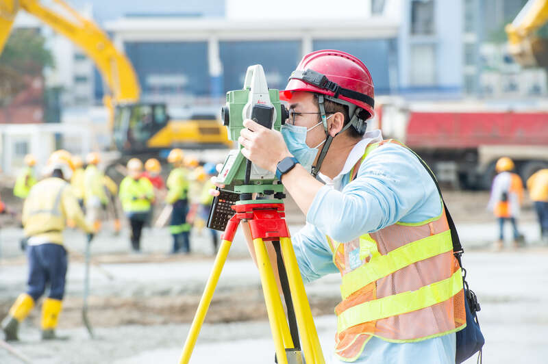 2月24日,经过连日阴雨天,香港天气放晴。在青衣项目的工地上,工程人员正在用设备进行测量。