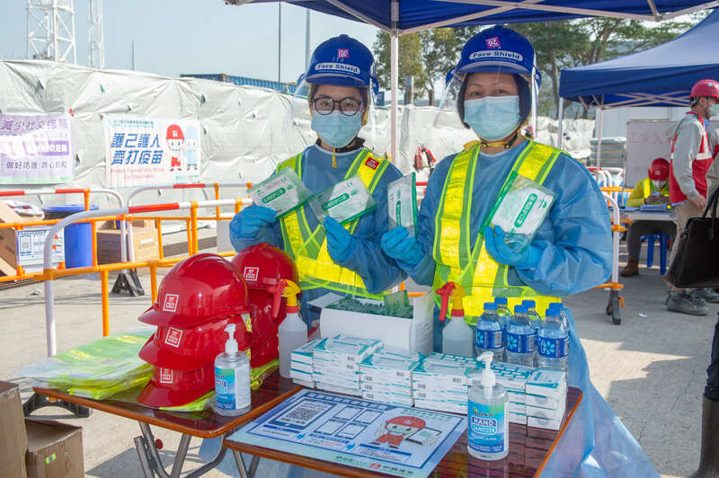 2月25日,在青衣方舱医院项目一角,摆着为工作人员备好的所需防疫物品和药品。