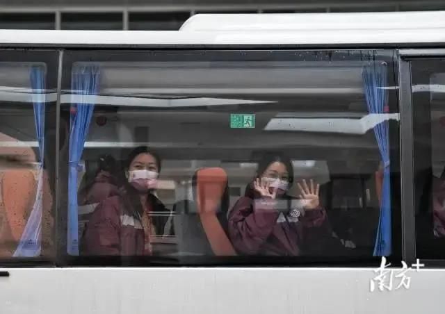 12时30分,小雨迷濛,大巴车缓缓驶离中山大学附属第一医院,工作队队员、护士张清容隔着车窗向人群挥手致意。她的丈夫和2岁半的女儿来到现场送行。丈夫表示,女儿虽然还不太明白妈妈要去做什么,但从小就对医护人员的工作充满崇敬和向往之心。“知道太太主动报名支援香港,我特别理解和支持,希望她早日安全归来,和我们一家团聚。”