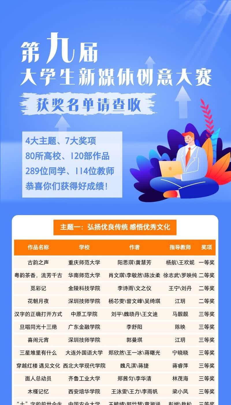 在这个万象更新的日子里,第九届大学生新媒体创意大赛获奖结果正式公布!