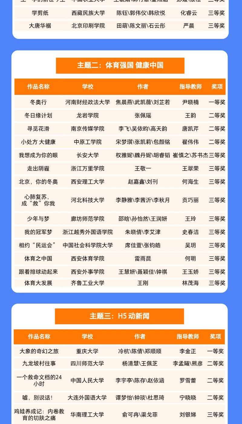 获奖名单