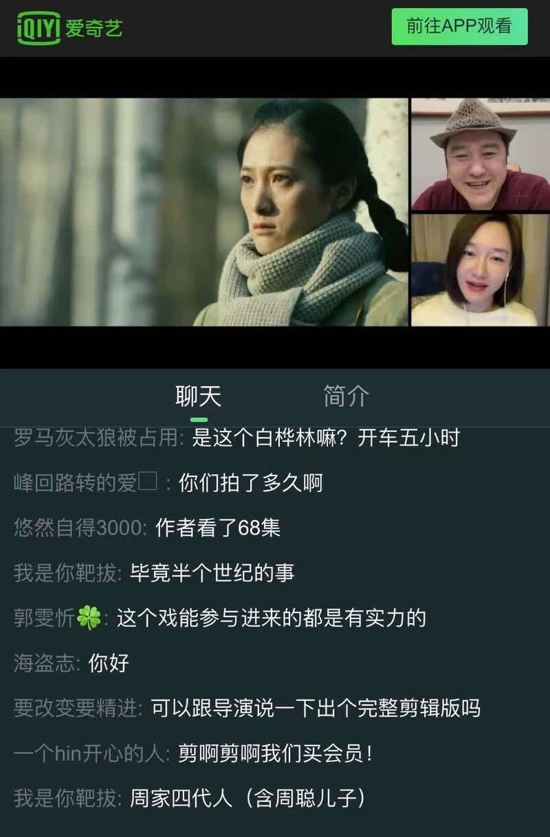 在此之前,该剧的演员雷佳音、殷桃、丁勇岱、萨日娜等演员已经先后通过网络直播,陪观众一起追剧。事实上,去年爱奇艺就推出了明星直播品牌“TAO LIVE”,邀请年轻艺人直播,陪观众看自己的作品,青年演员白鹿、唱跳偶像宋雨琦等都曾上线“点评”。