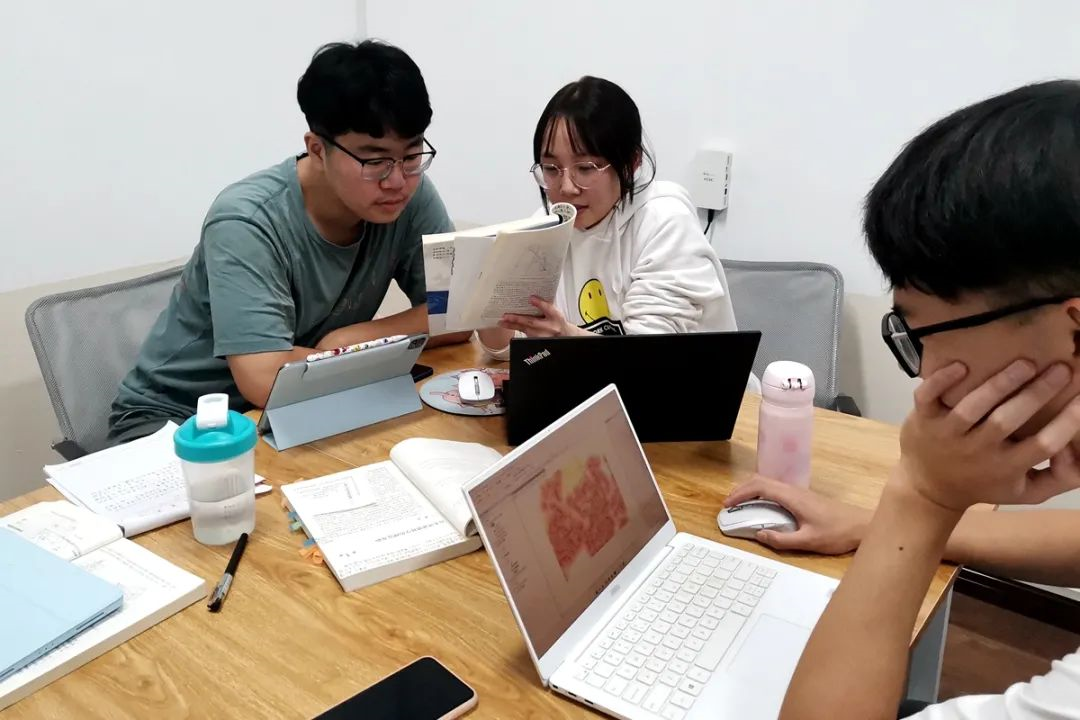 ▲姜卓攸与同学一起讨论研究课题(受访者 供图)