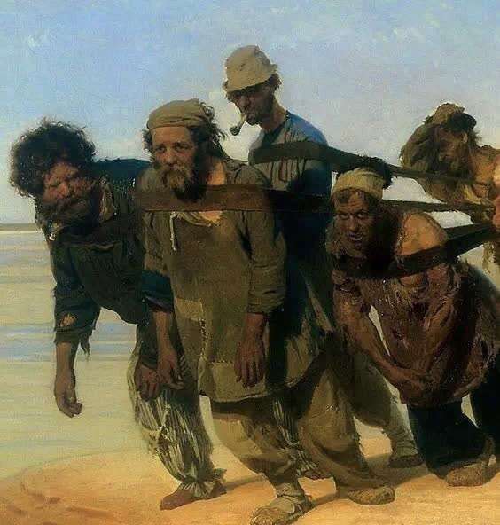 享誉世界的列宾美术学院,是世界四大美术学院之一。这所学院的名字是为了纪念伟大的批判现实主义画家列宾,而列宾正是出生于乌克兰。小时候,我被美术课本上的那幅《伏尔加河上的纤夫》深深震撼,当时并不清楚摄人心魄的是什么,多年后再欣赏这幅作品,方才感受到作品的精妙技法背后的深刻寓意。画面上,沙滩的起伏和河湾的转折巧妙地烘托了11位纤夫雕塑般的形象,整幅画有强烈的压抑感,空旷的空间将观看者的视线引向纤夫,他们孤独、惆怅而无助,而形态又如此健硕。可以想见,一百多年前,列宾诸多作品中人物形象所暗藏的那种不屈精神,不断引导、鼓舞着当时的劳动人民。