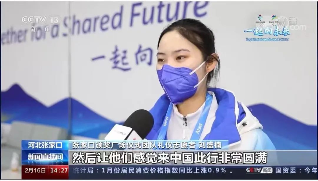 ▲初等教育系2020级学生,张家口颁奖广场冬奥会颁奖礼仪庆典仪式礼仪人员刘盛楠接受央视采访