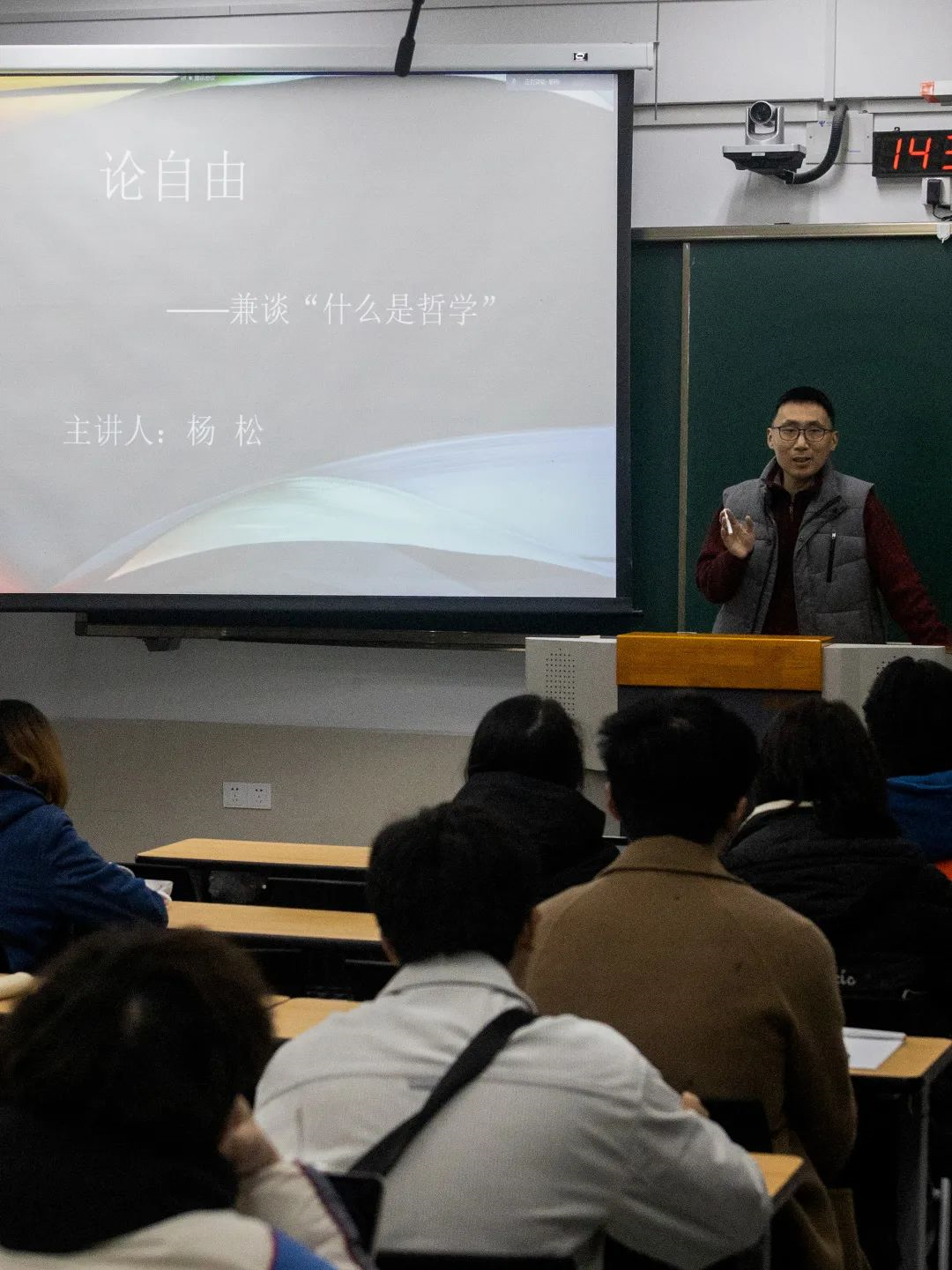 周昌乐的授课内容深入浅出、逻辑清晰,时而引发同学们联想与思考,时而活跃课堂气氛,引来笑声连绵。