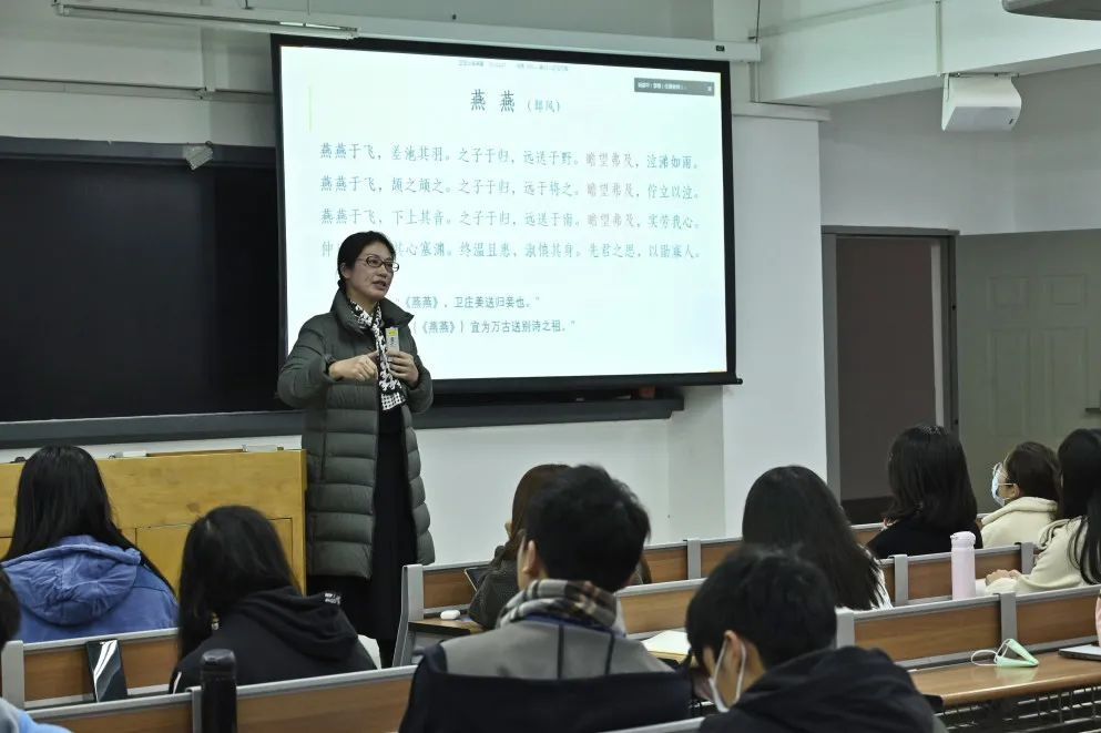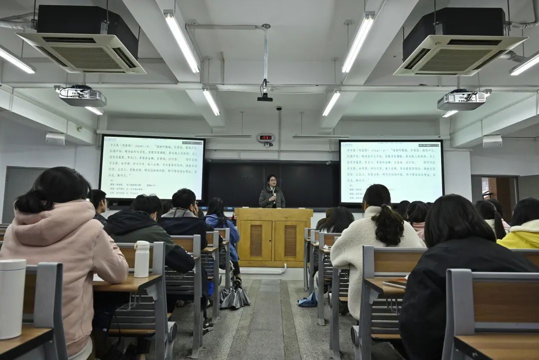 在联兴楼305的教室里,人文学院李菁副教授饶有气质地站在讲台旁,带着一分欣喜、一分优雅,怀着与同学们一样的期待,用富有诗性的语言慢慢打开了文学的大门。