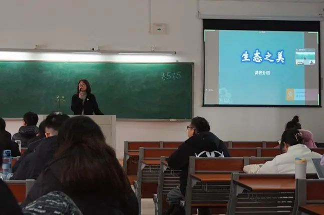 为了充分展现课程主题“湿地之美”,让同学们身临其境地感受生态美学,陈鹭真在讲解过程中还展示了丰富多彩的照片,有秀美壮丽的自然风景,也有自由嬉戏着的小生灵。台下的“观众”目不转睛地盯着大屏幕,生怕错过任何画面……