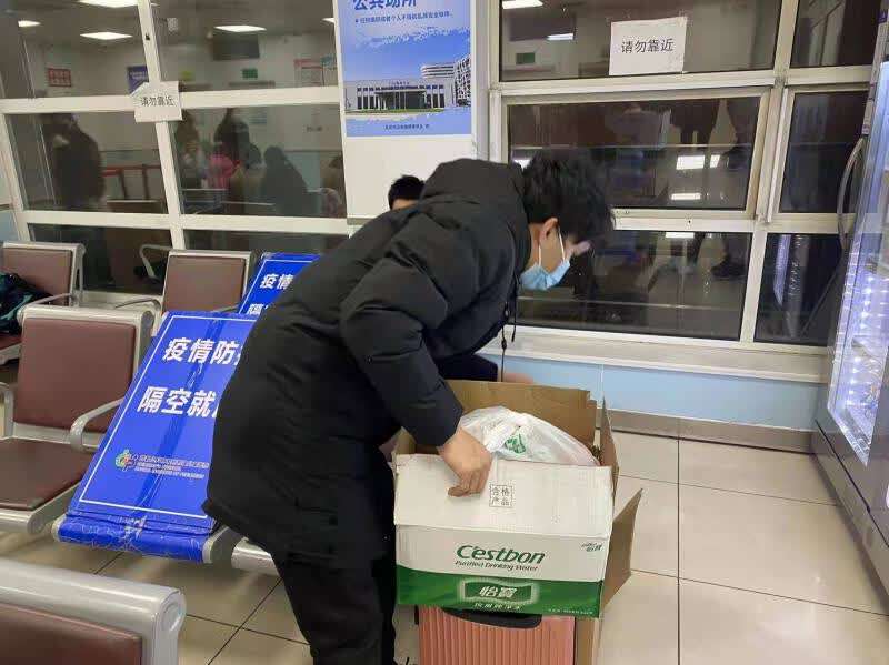 吃完饭,陈强的手机没电了,他着急回医院充电,因为不能错过妻子发来的消息。记者买来两箱自热盒饭和速食食品,将陈强送回了医院。