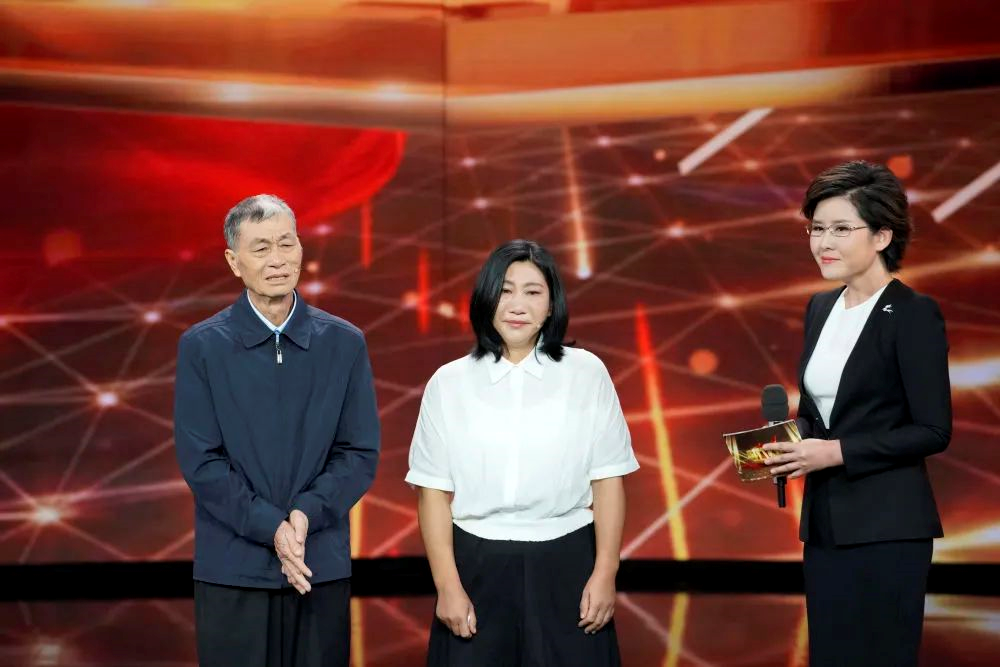 黄文秀的父亲黄忠杰(左)、姐姐黄爱娟(中)