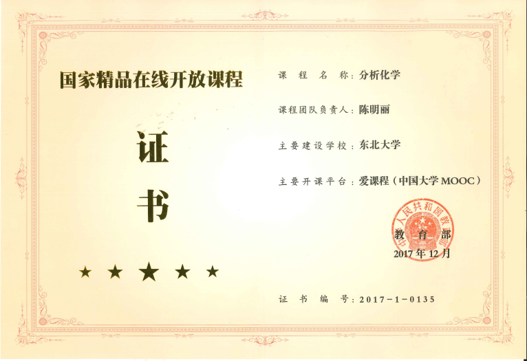 以分析化学相关课程为依托,教学团队组织设计的课程内容和改革方案,获批2019年东北大学优秀本科教育教学案例两项,获得2018年东北大学教学成果奖和2020年辽宁省本科教学成果奖一等奖。回首5年的课程建设历程,《分析化学》已连续开课10期,总服务人数累计超过4万人,不但被14所其他高校选用为SPOC课程,还个性化服务于来自30多所国内高校的学生以及众多的社会学习者。