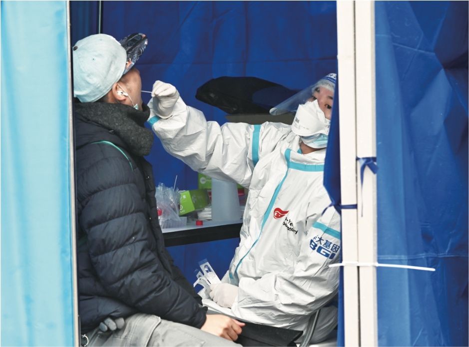2月21日,在香港东荟城露天广场流动采样站,内地“国家突发急性传染病防控队”的P2+核酸检测车帮助香港提升检测能力。图片来源 视觉中国