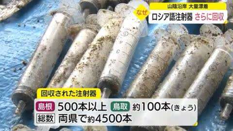 据日本山阴中央电视台消息,近日,日本多地海域发现了大量附着针头的注射器,截至3月2日,仅鸟取、山阴两县就共回收约4500只,岛根县约1300只,总量超5000只。