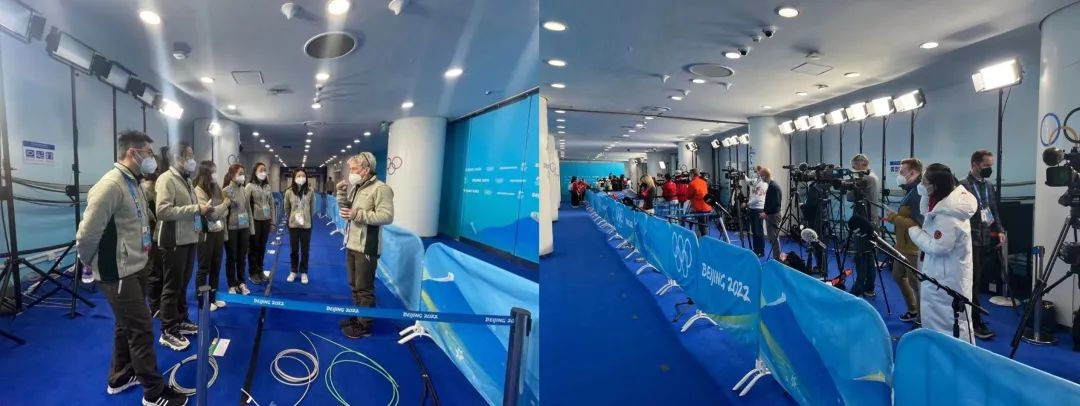混合采访区(Mixed Zone)是重要的转播区域。为了给各国媒体提供最好的采访、转播角度及区域,实习生们在赛前赛中负责组织媒体和运动员的采访区域和动线,并协助媒体在混采区对运动员进行赛后采访。实习生们需要在每场比赛前了解持权转播商的采访意向;比赛结束后,在经理的带领下管理混合采访区内的采访、轮换顺序及人员进出,并将运动员带向有相应采访意向的转播商。