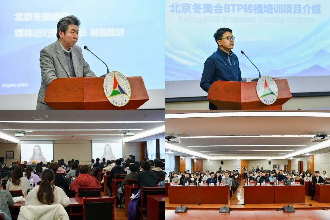 2020年12月18日,中国传媒大学举行北京2022年冬奥会转播培训项目(BTP)宣讲会。北京冬奥组委媒体运行部副部长韩强、北京冬奥组委媒体运行部转播协调处处长高博就北京2022年冬奥会转播培训项目(BTP)作了宣讲。奥林匹克转播服务公司(OBS)BTP项目负责人Luana Florentino和Jim Owens通过视频向师生们介绍了BTP项目的背景、性质、任务分工及工作时间,同时表达了对此次国际合作的期待。宣讲会受到中央广播电视总台体育频道报道,在师生群体中引发强烈反响。