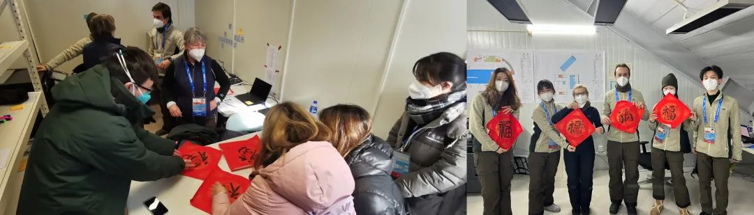 冬奥恰逢春节,中传的赛时实习生们与外国友人一同写“福”字,送上传媒学子最真挚的新年祝福。