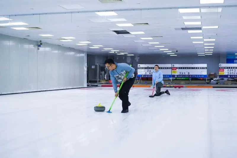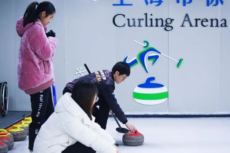 交大冰壶队员在冰壶比赛中