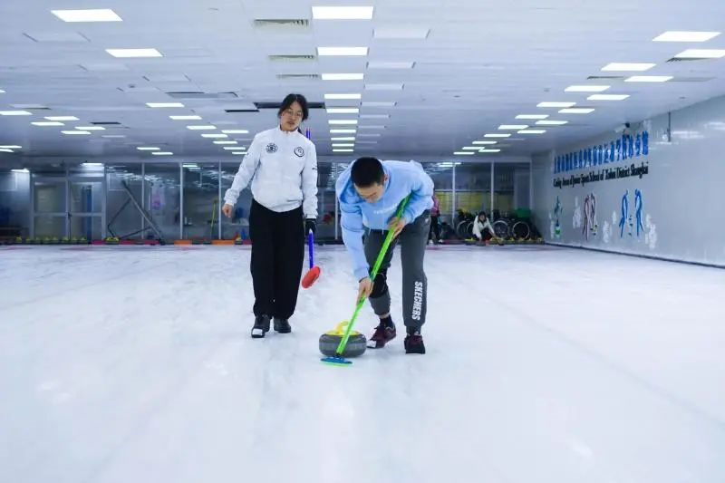 交大冰壶队的同学正在练习投壶及扫冰判断