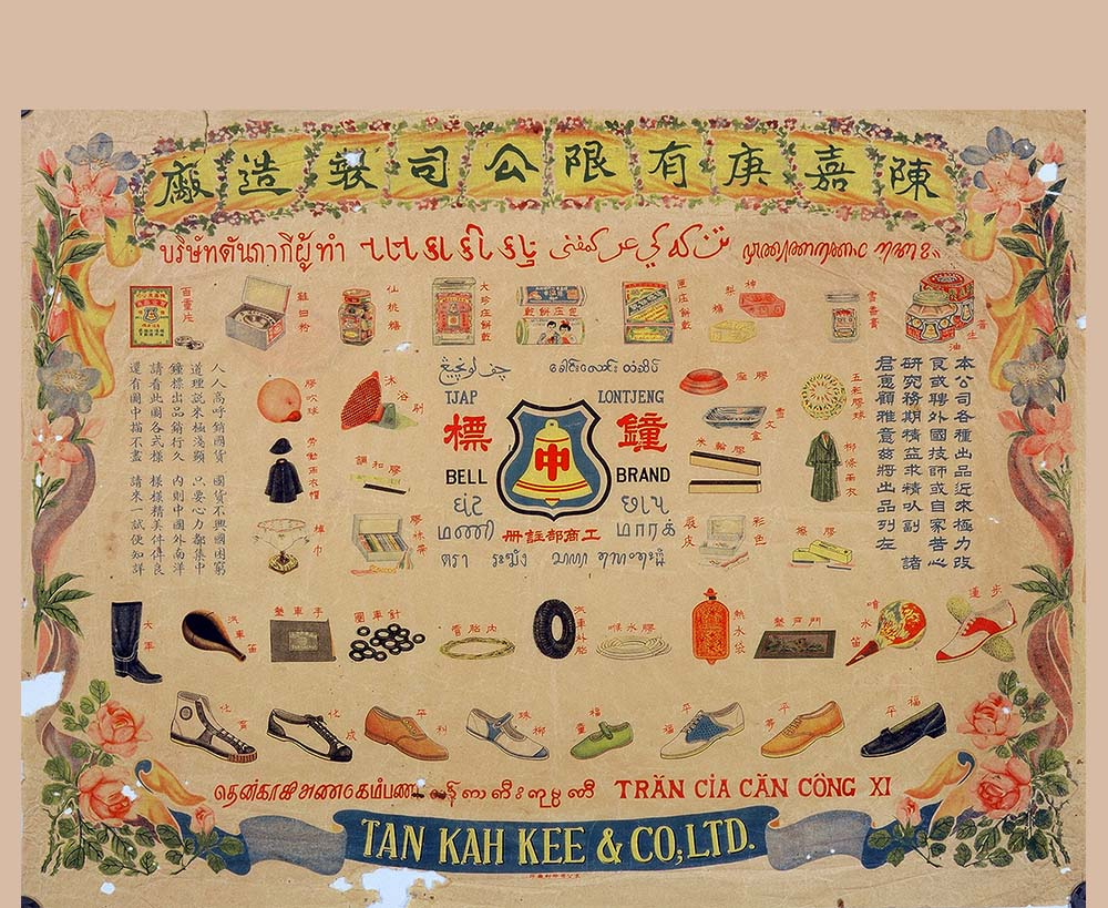 1919年,陈嘉庚改组业务并成立陈嘉庚公司,企业虽然办在新加坡,但对中国市场非常重视。虽然身在异国他乡,他也从未忘记炎黄子孙的身份。他为产品注册的商标为“钟”标,商标中间有一个粗体毛笔汉字“中”字,“中”字外围是一口钟的形状,“钟”与“中”谐音,且具有警醒、报警等多重含义。