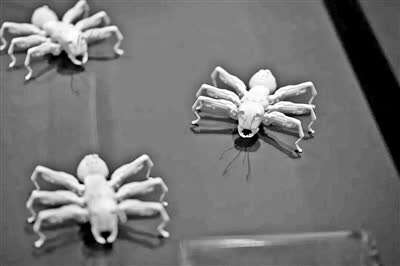 《仿生蚂蚁》 费斯托 激光烧结聚酰胺、3D MID技术(激光构造和激光镀金)、弹簧钢、摄像头、传感器、执行器、处理器、收音机和其他电子模块、电池。蚂蚁复制品:3D打印塑料
