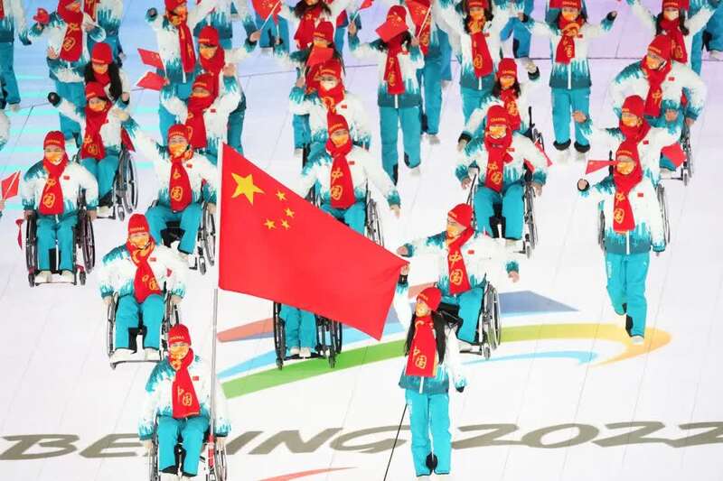 北京2022年冬残奥会开幕式中国队入场。李隽辉/摄