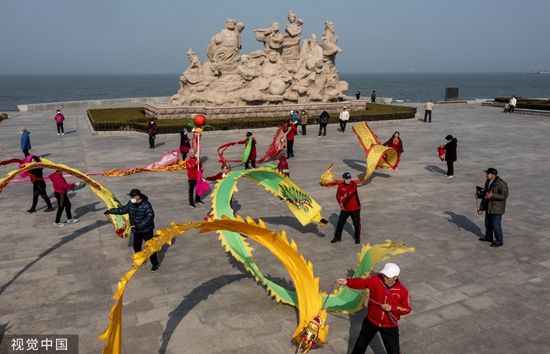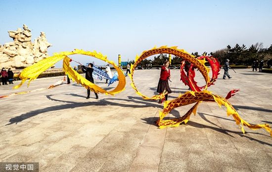 2022年3月3日,农历“二月二”将至, 山东省烟台市蓬莱区市民排练秧歌、彩带龙喜迎节日到来。据了解,农历二月初二“龙抬头”,是中国民间传统节日, 具有祈福纳祥、平安顺利的美好寓意。