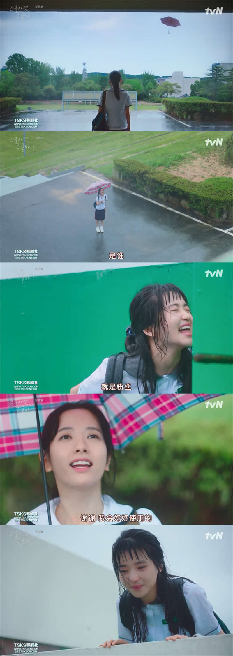 剧中将罗希度对高宥琳的这种崇拜,表现得唯美又浪漫。有一个下雨天,练习结束后的高宥琳没有伞。罗希度不好意思直接把伞拿给高宥琳,她跑到顶楼上,打开雨伞,让雨伞降落到高宥琳面前。