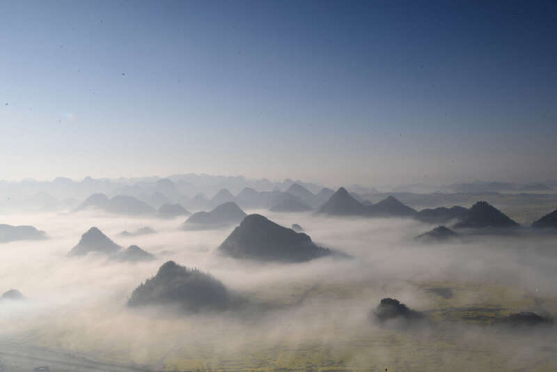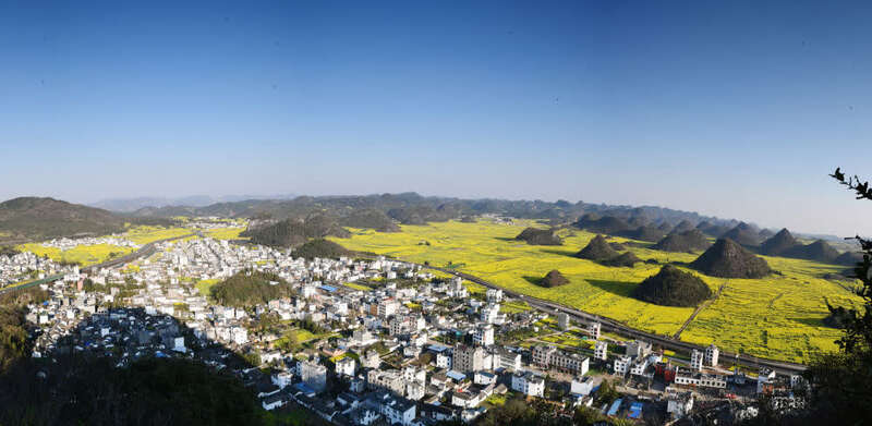 近日,云南省罗平县的100万亩油菜花迎春盛开,黄花、碧水、群山、村舍相映成趣,透出浓浓春意,吸引游客前来赏花游玩。