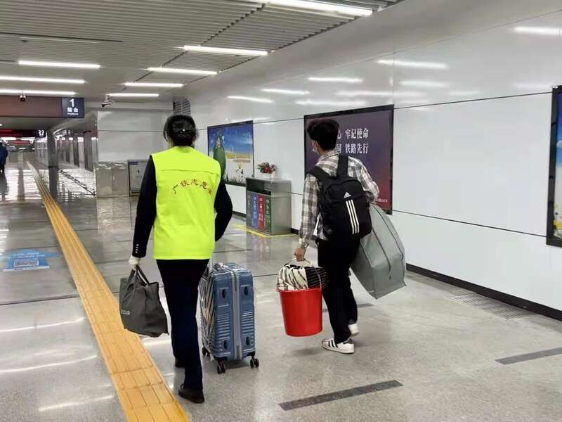 志愿服务暖人心,雷锋精神代代传。“谢谢你们送我出站,还带我做核酸。”今年60岁的李奶奶和老伴一早从衡阳来到了深圳,在出站时由于行李过多遇到了困难,深圳站迎春花服务队员主动上前帮忙。“我们安排了迎春花服务队队员在进站口、母婴候车室等岗位,为旅客提供帮拿行李、咨询引导等志愿服务。”
