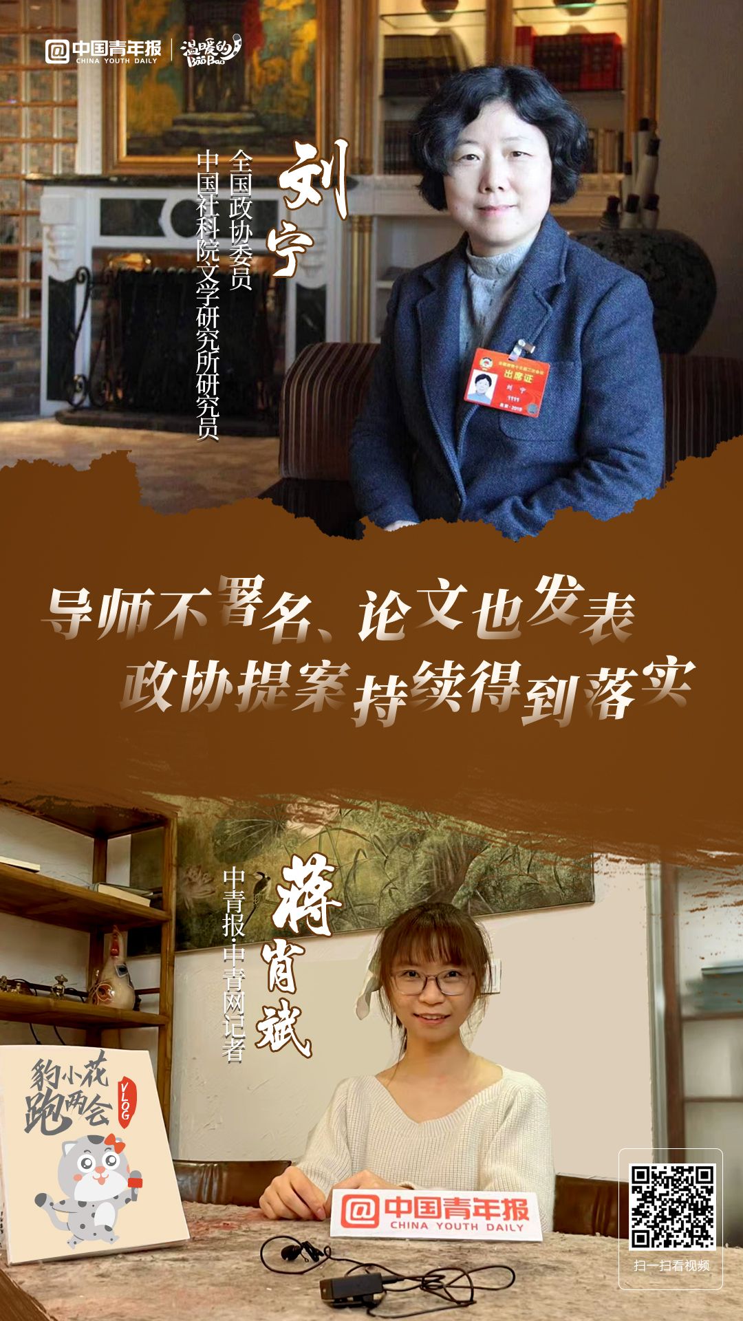 中青报·中青报记者 蒋肖斌 全国政协委员、中国社会科学院文学研究所研究员刘宁,至今对一位师长的来信记忆犹新:“他告诉我,自己的一个学生给一家学术期刊投稿,但期刊一直要求导师把名字挂在前边,否则就不发,双方‘拉锯’很久。后来,导师把《中国青年报》的报道转给了那家期刊的主编,学生的论文马上独立署名发表了。” 这个改变一篇论文“命运”的报道,是2020年全国两会上,刘宁提交了关于“人文社科期刊要多支持青年学者”的提案,《中国青年报》专访刊发《怎样支持青年学者独立发表学术成果》。“导师不署名,论文发不出去”的问题引发强烈社会反响。 这个提案,最近又有了新的进展。2月15日,中国科学院科研道德委员会发布《关于规范学术论著署名问题负面行为清单的通知》,以“3禁止4不得”对7类负面行为说不,要求“零容忍”,对严重违背科研诚信要求的行为终身追责。 近日,再次接受中青报·中青网记者专访时,刘宁认为,上述《通知》 充分尊重了青年学者在科研工作中的实际贡献,“这是一个合理的状态,也许不会立刻杜绝负面现象,要通过学界共同监督的方式来实现”。 刘宁坦言,事实上学术期刊本身也有苦衷,倾向名家署名是受制于“影响因子”的评价体系,青年学者独立署名会影响下载量和引用率。关于这一点,在此之前,2021年6月,中宣部、教育部、科技部联合印发《关于推动学术期刊繁荣发展的意见》,其中特别指出:防止过度使用基于“影响因子”等指标的定量评价方法评价学术期刊,特别是哲学社会科学期刊。 刘宁表示,人文社科与自然科学有很大的不同,“自然科学的发展进程很快,100年前科学家的论文已经真的成为历史。但100年前一位著名学者写的一篇研究杜甫的文章,可能今人看来依然深有启发,这是人文学科的发展规律”。 而且,影响因子往往看的是短期的影响力,不能完全以此来评价一篇论文的价值。“一些非常有独立思考能力的人文学者,不追逐时髦话题,那他的研究成果也许当时没有太多人关注和引用,但从长远来看,他的研究是很有价值的。”刘宁说。 让她欣喜的是,自己的提案并不是在两会期间“走一个流程”,而是得到了反馈、推进,直到落实。 2020年的提案,刘宁收到了很多很多的反馈,很多年轻人甚至流着眼泪给她打电话。刘宁说:“他们很委屈。我始终跟他们说,要对我们的国家有信心。” “我并不知道我的提案能发挥什么影响,但是我看到相关部门发布的文件时都特别激动,无论是不是有我的一点点小贡献,都是对我的鼓励。” 刘宁说,“我刚到政协的时候,汪洋主席跟我们讲,政协委员为国履职、为民尽责,不靠说了算,要靠说得对。我是一个读书人,用我的学术训练、我的观察和调研,把我认为正确的东西尽可能地表达出来。” 出品人 张坤 总监制 毛浩 吴湘韩 监 制 许革 孙晔 制 片 王聪聪 采 访 蒋肖斌 拍 摄 许子威 剪 辑 宋一瑶 编 导 王聪聪 片 头 任聪 赵蕾 海 报 陈龙 宣 传 李京 黄毅 陈高鹏 中国青年报社出品