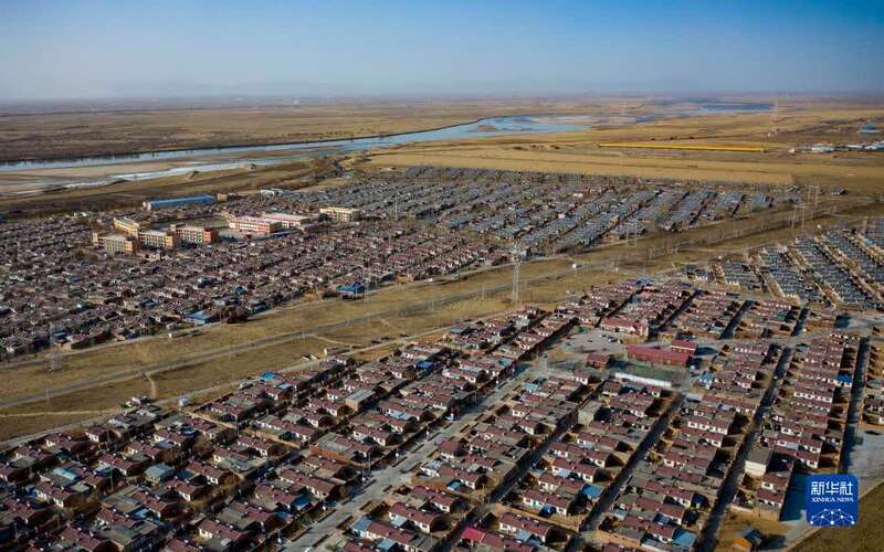 这是3月4日拍摄的宁夏银川市月牙湖乡滨河家园四村(无人机照片)。新华社记者 杨植森 摄