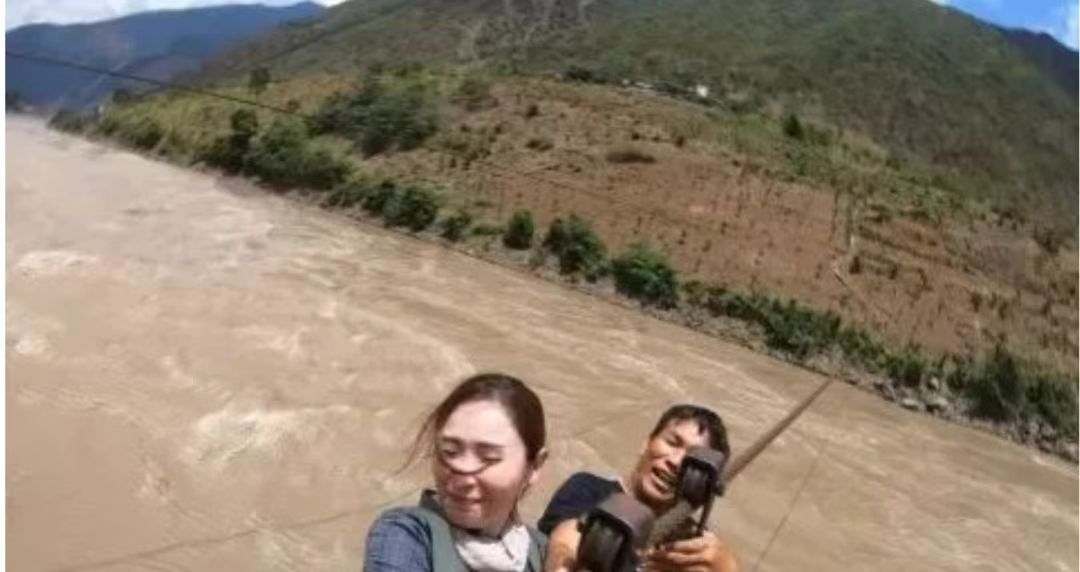 无论是在海拔1500米之上——又称“悬崖村”的阿土列尔村,还是溜过奔腾汹涌的云南怒江,她都亲自上阵,拿着一根自拍杆,爬天梯、坐溜索,带着观众上天下地。她觉得,如果没有这个镜头的视角,观众便无法身临其境地体验到当地人民爬天梯、坐溜索时的那种惊心动魄。