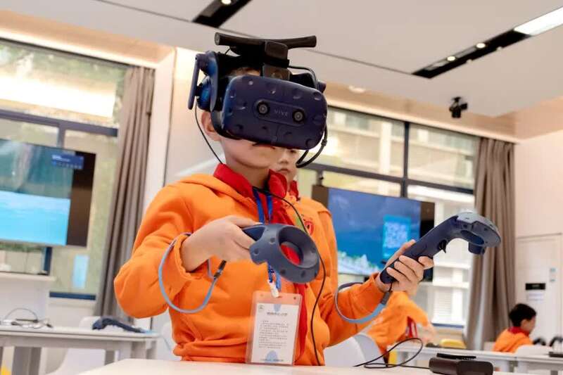 ▲在华中农业大学体验虚拟仿真实验室的小朋友(邓莎莎 摄)