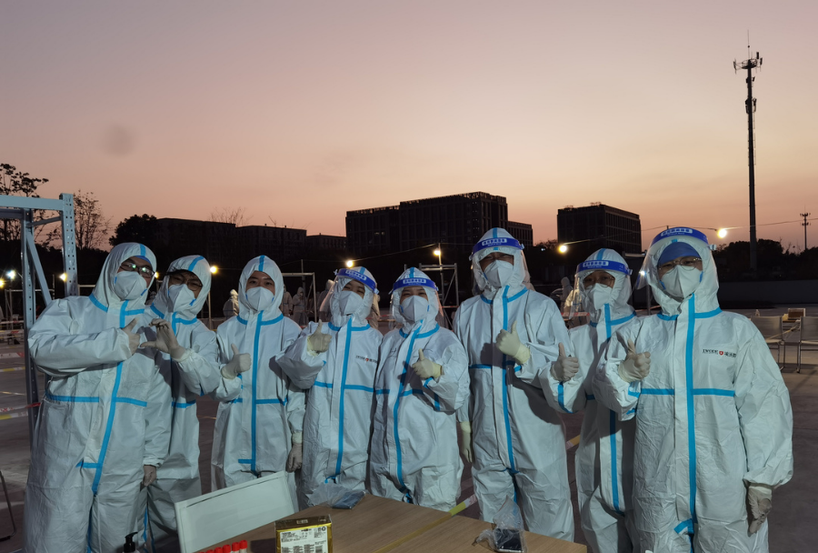 本学期开学前,我又一次参加到学校的常规全员核酸检测任务中。在气温近零度、雨夹雪天气的恶劣条件下,我和其他志愿者们一样,坚守岗位、不畏严寒,服务了数百位我校师生,希望能为学校的疫情防控贡献出微薄的力量。