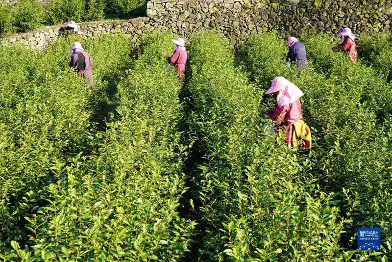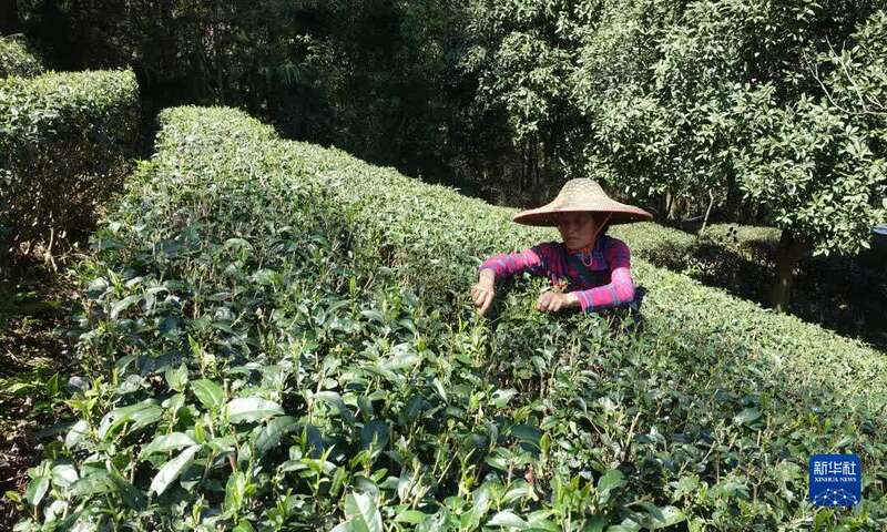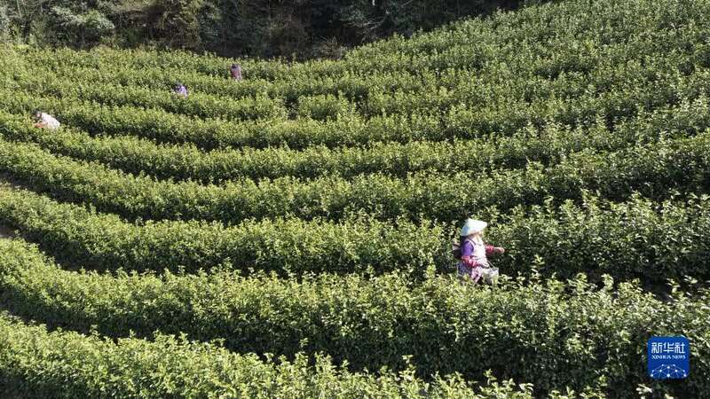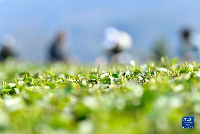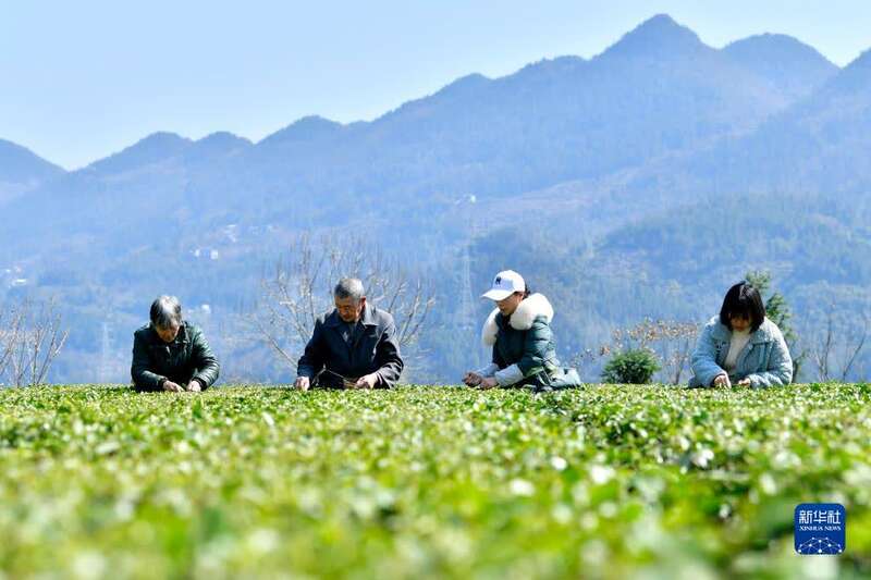 3月8日,茶农在湖北省宣恩县万寨乡长堰沟村的茶园里采茶。新华社发(宋文摄)