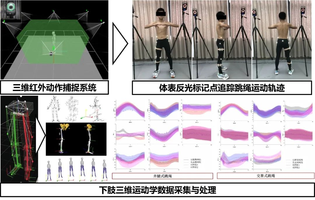 研究对不同种类的跳绳鞋和相关鞋具进行模块化的运动生物力学综合测试与评估,以运动生物力学测评研究为主线,结合肌肉电信号发力特征,探讨跳绳运动更深层次的力学机理,为开发能够预防绊绳的跳绳鞋具提供科学依据。