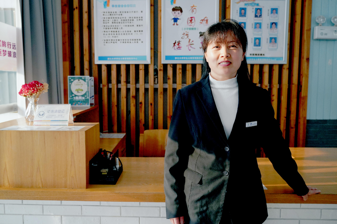 稳重、善良、乐于为别人着想的她,既是浙大紫金港校区的一名楼长也是陪读妈妈。 她说很幸运能来到美丽的杭州,来到充满书香的求是园。