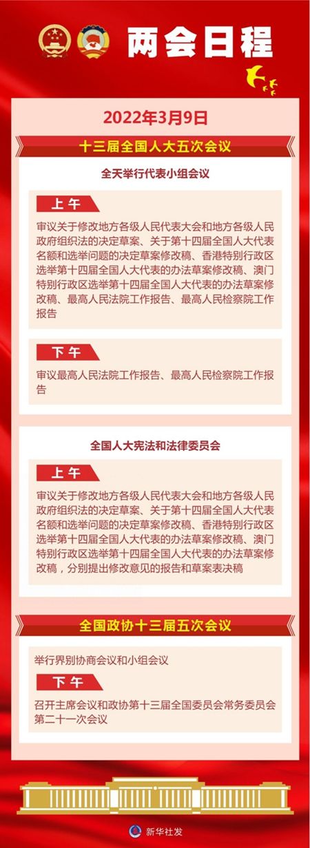 两会日程预告|3月9日:人代会审议“两高”工作报告等 政协举行界别协商会议和小组会议