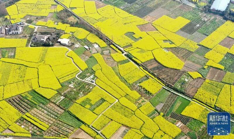 3月8日在四川省宣汉县黄金镇拍摄的油菜花田(无人机照片)。新华社发(张平摄)