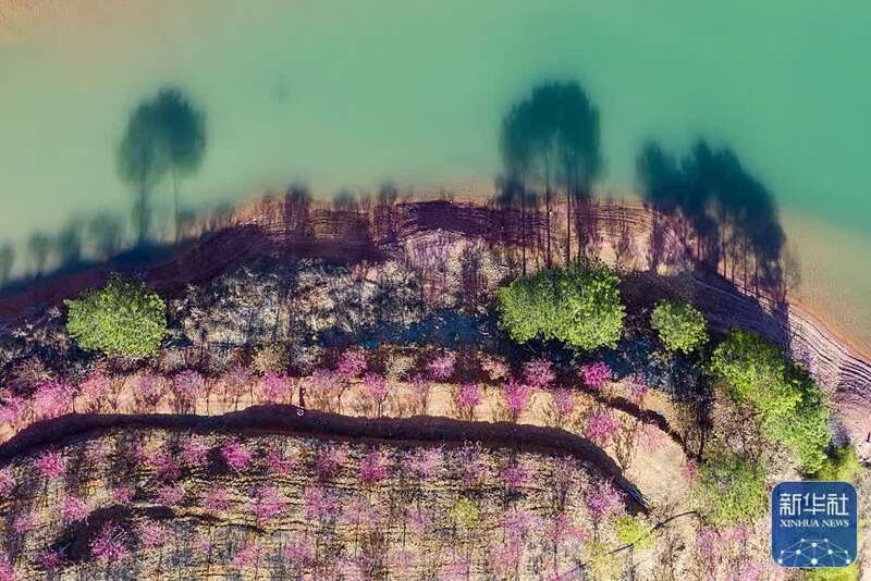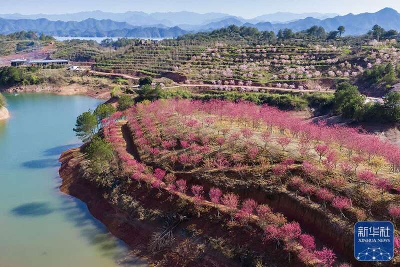 3月8日拍摄的浙江省杭州市淳安县界首乡春日景色(无人机照片)。新华社发(毛勇锋摄)