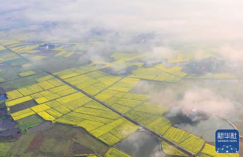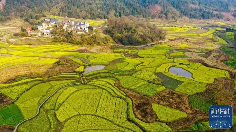 3月8日拍摄的贵州省黔西市绿化白族彝族乡大海子田园春色(无人机照片)。新华社发(范晖摄)
