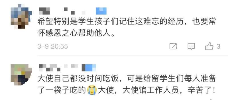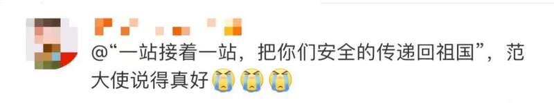 中国驻乌克兰大使范先荣动情地对抵达的中国留学生们说:“我情不自禁地想去跟同学们握手,看见大家鲜活的生命,来到这里,我真的非常高兴,你们的安危,就是中央的牵挂,中国现在的实力和影响力完全可以做到!我会一站接着一站,把同学们一直安全地传递回祖国。”