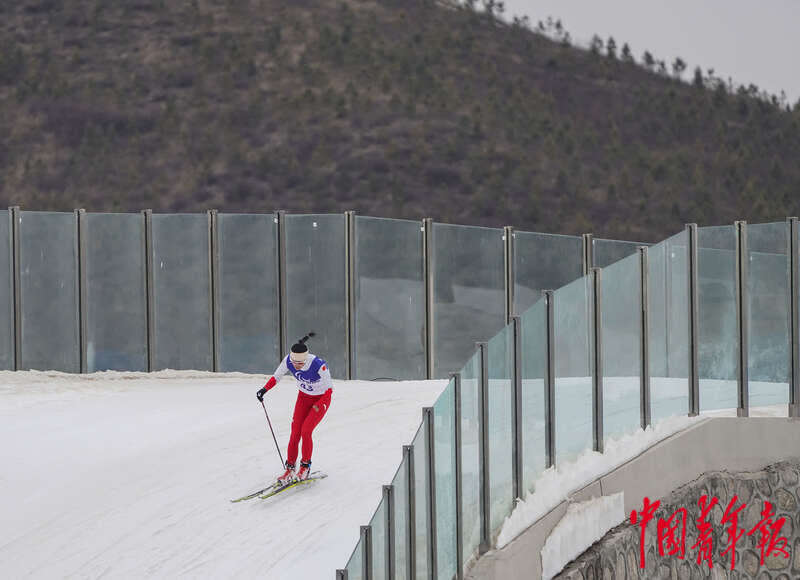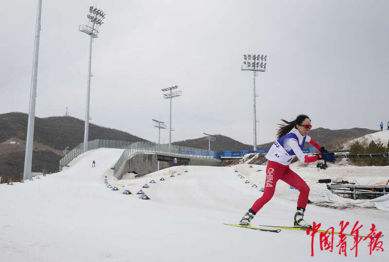 3月9日,北京2022年冬残奥会残奥越野滑雪女子短距离(自由技术)站姿比赛中,中国代表团旗手、中国选手郭雨洁止步半决赛。她此前在残奥冬季两项女子6公里(站姿)比赛中夺金。中青报·中青网记者 李峥苨/摄