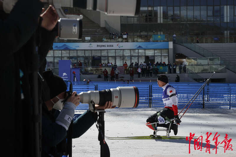 3月8日,北京2022年冬残奥会残奥冬季两项男子中距离(坐姿)比赛中,中国选手刘子旭获得第五名。他在残奥冬季两项男子短距离(坐姿)比赛中为中国冬残奥代表团夺得本届冬残奥会首枚金牌。中青报·中青网记者 李峥苨/摄