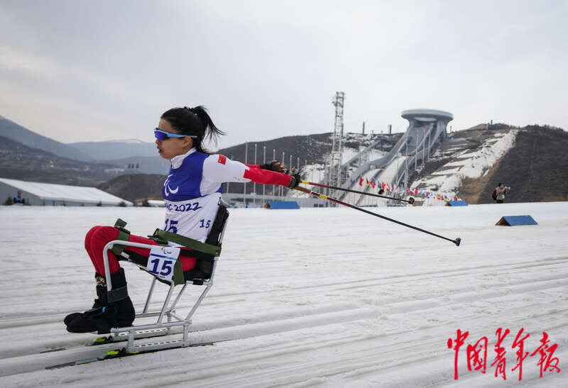 3月9日,北京2022年冬残奥会残奥越野滑雪女子短距离(坐姿)比赛中,中国选手杨洪琼夺得金牌。在几天前的残奥越野滑雪女子长距离(坐姿)比赛中她也获得了金牌,当日的夺冠让她成为中国代表团在这一天中诞生的两位“双冠王”之一。中青报·中青网记者 李峥苨/摄