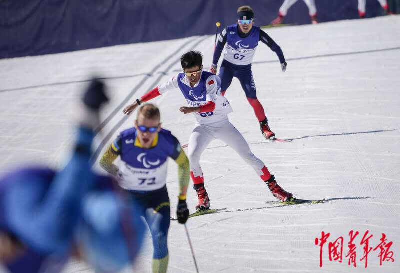 3月8日,北京2022年冬残奥会残奥冬季两项男子中距离(坐姿)比赛中,中国选手刘梦涛获得冠军。他在此前的残奥冬季两项男子短距离(坐姿)比赛中获得一枚铜牌。截至发稿,中国代表团在本届冬残奥会上已收获10金9银13铜、共32枚奖牌。8日、9日在国家冬季两项中心举行的残奥冬季两项、残奥越野滑雪各项比赛中,中国运动员获得3金1银2铜,发挥出色。中青报·中青网记者 李峥苨/摄