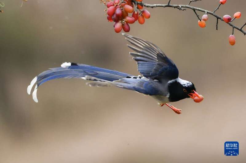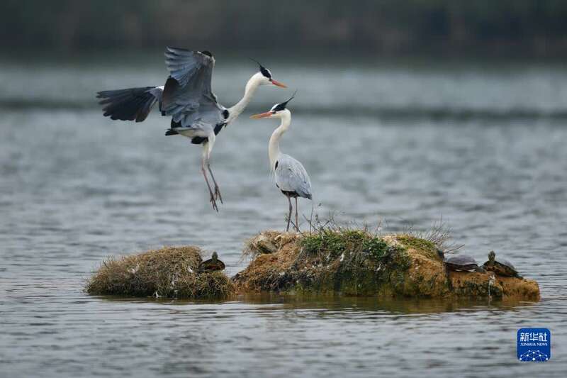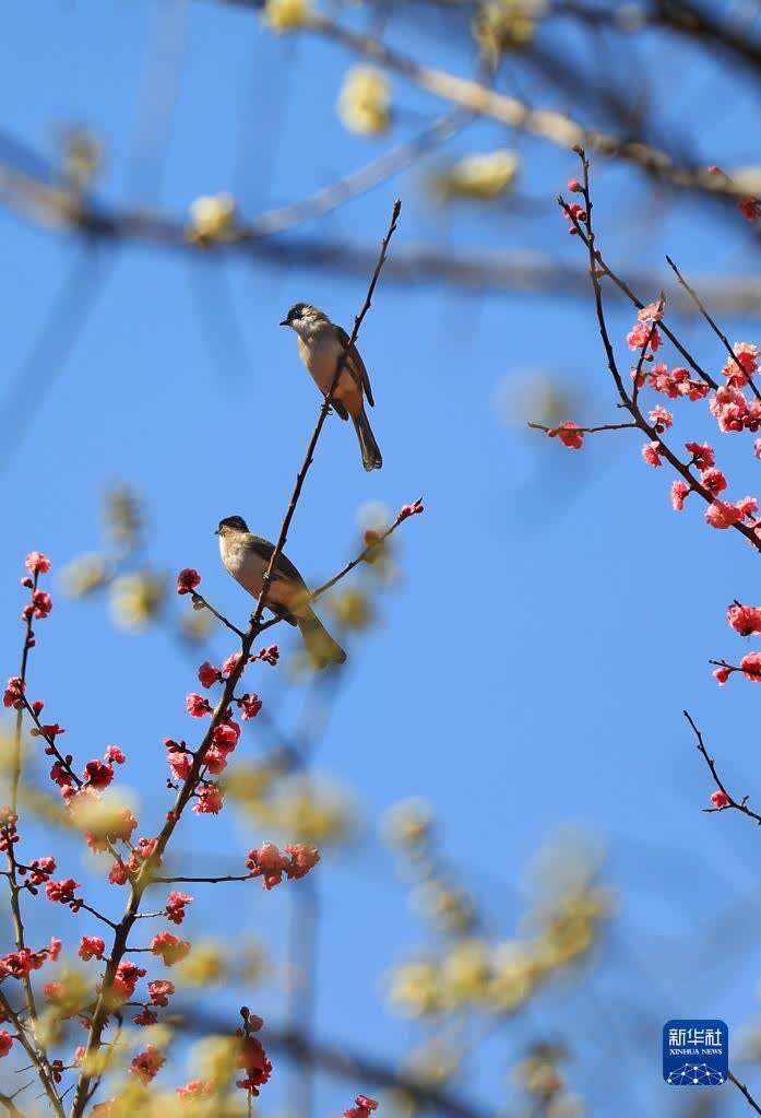 3月10日,在贵州省贵阳市观山湖公园,两只鸟儿在嬉戏。新华社发(邓刚 摄)