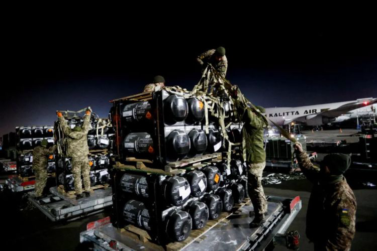 ▲ 2022年2月10日,乌克兰军人在基辅郊外的鲍里斯波尔国际机场接收标枪反坦克导弹,这是美国对乌克兰的军事支援计划的一部分。