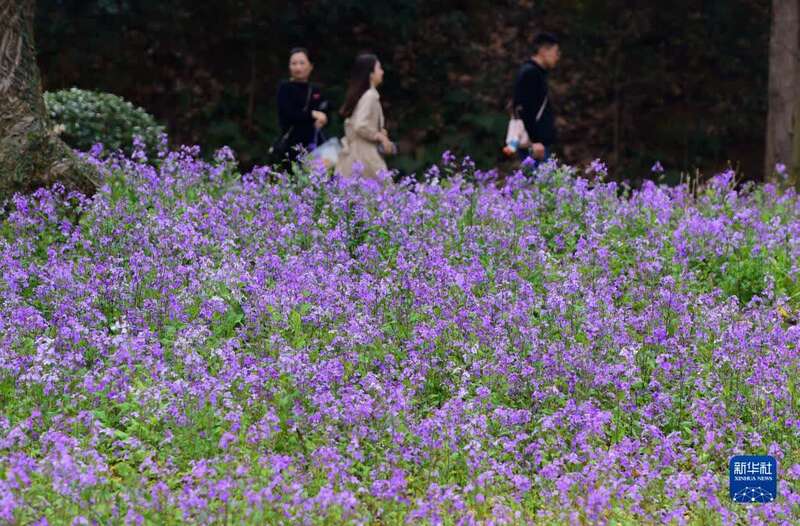 3月10日,人们在江苏无锡太湖鼋头渚景区内观赏二月兰。